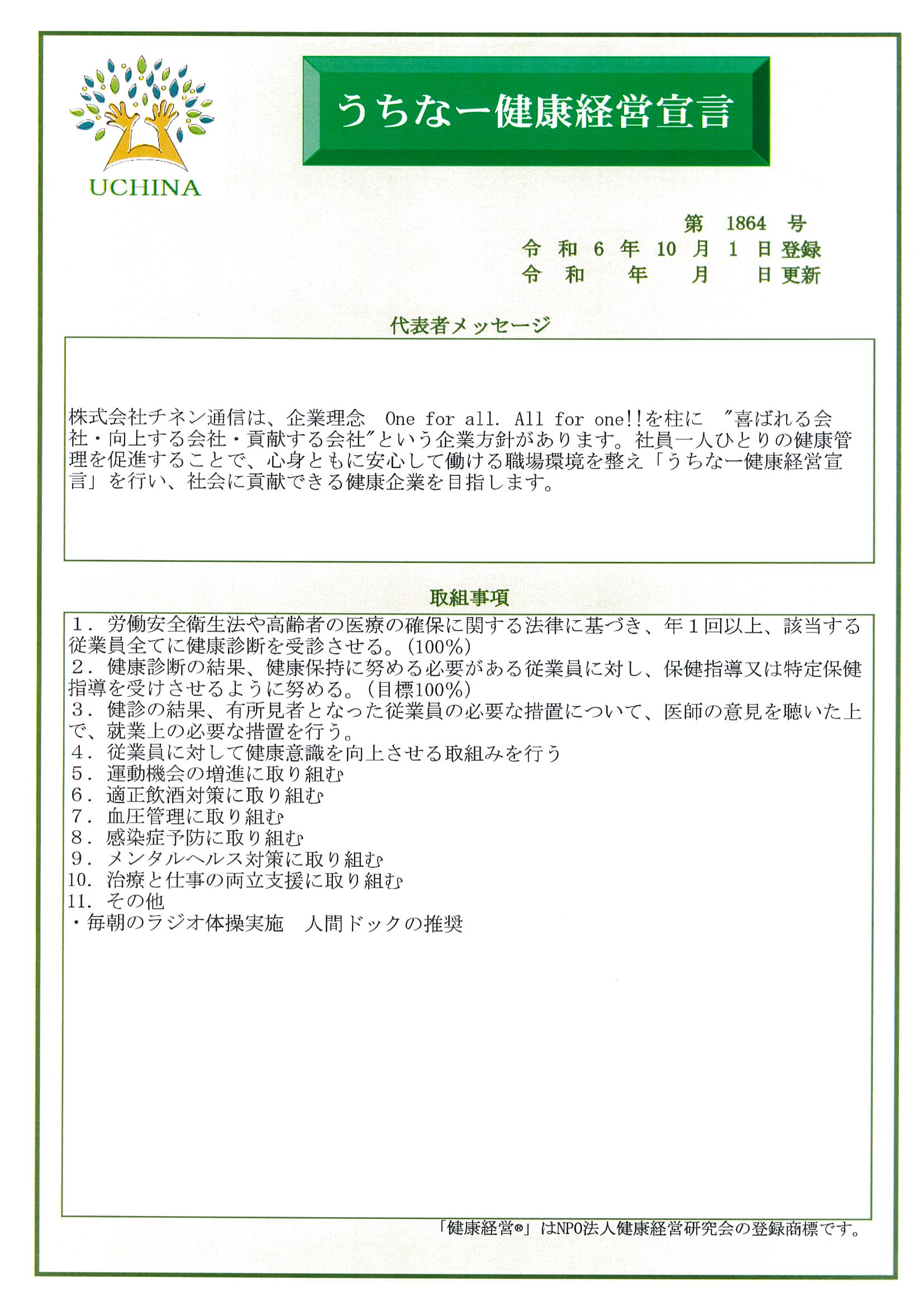 株式会社チネン通信では企業理念を柱に "喜ばれる会社・向上する会社・貢献する会社"という企業方針があります。